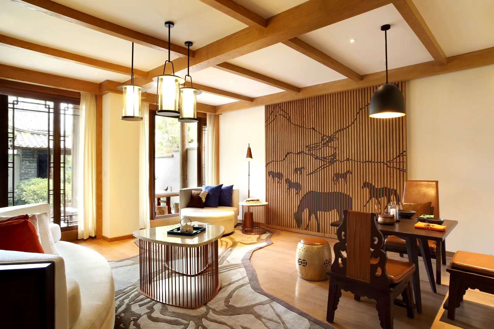 麗江古城英迪格酒店位于茶馬古道極具戰(zhàn)略意義的南大門,酒店的裝飾設(shè)計(jì)均源自古商隊(duì)文化和當(dāng)?shù)氐拿耖g傳說。?客房?jī)?nèi)以精致的藝術(shù)品點(diǎn)綴,細(xì)節(jié)上更注重藝術(shù)創(chuàng)新。從馬匹形狀的衣櫥到?jīng)]得令人屏息的玉龍雪山壁畫,搭配現(xiàn)代舒適感設(shè)計(jì),無(wú)不彰顯了過去與現(xiàn)在的完美融合。