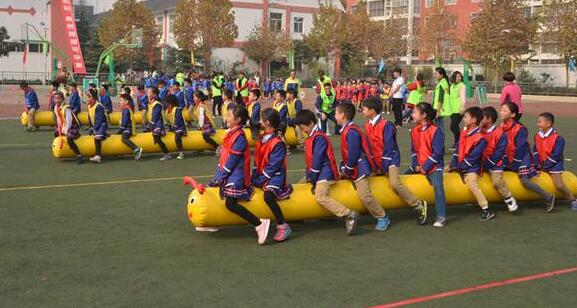 4—8人坐騎在充氣毛毛蟲道具上,隊(duì)員雙手握住毛毛蟲的固定把手,毛毛蟲道具前方立于起跑線后,裁判發(fā)令后,隊(duì)員通過團(tuán)隊(duì)協(xié)調(diào)配合帶動(dòng)瘋狂毛毛蟲游戲道具在跑道上快速行駛,裁判安排隊(duì)員注意毛毛蟲道具不帶拖地行走,以防摩擦漏氣損壞毛毛蟲道具,賽道長度根據(jù)場(chǎng)地制定。以各參賽隊(duì)員所用的毛毛蟲道具觸及終點(diǎn)線為計(jì)時(shí)停止,往返一次,用時(shí)最短者為勝。 ??獎(jiǎng)勵(lì)方法:取前三名,分冠亞軍。
