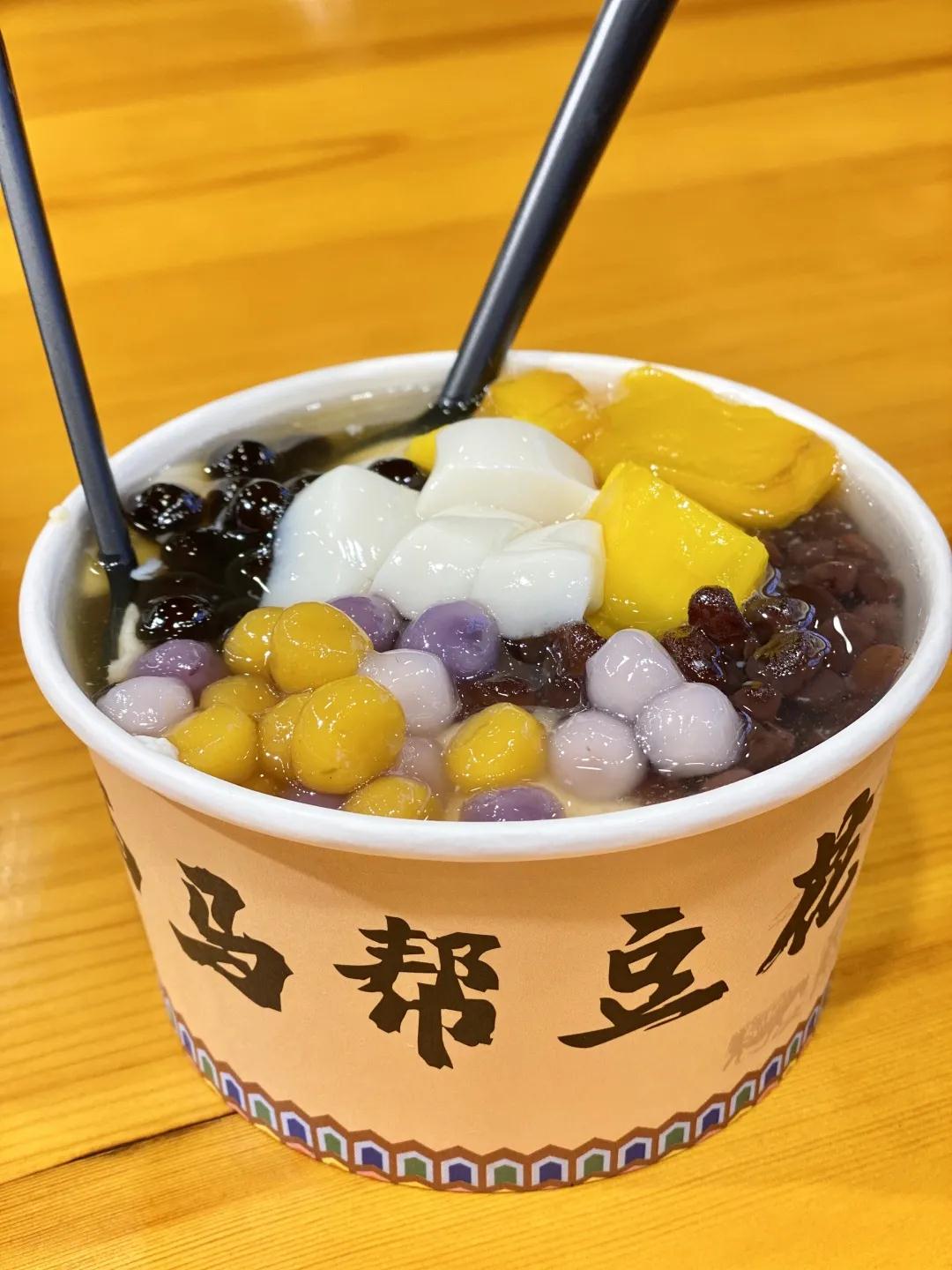 既然坐下來(lái)了,不如再看看還有什么好看的,買來(lái)嘗嘗。旁邊的納西馬幫豆花映入眼簾,點(diǎn)了一份布丁芋圓豆花。有點(diǎn)像“鮮芋仙”的感覺(jué),一份加了很多料的豆花,味道沒(méi)有太多驚喜,差不多就是想象中的味道。