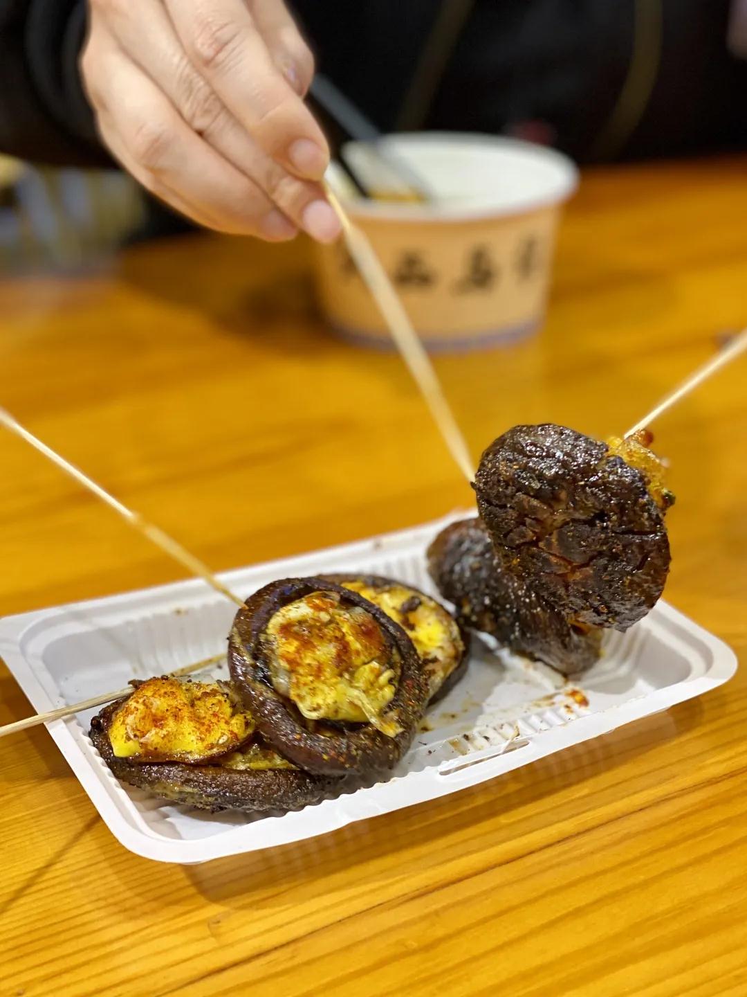 走過(guò)小吃街,被一個(gè)窩著鵪鶉蛋的香菇吸引了,造型好看,配色醒目,看了之后忍不住想買來(lái)試試(不知道游客朋友們會(huì)不會(huì)也被這個(gè)特點(diǎn)吸引……)。