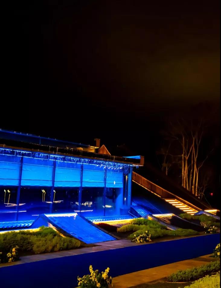 建筑輪廓被暖融融的橙色光包裹,十分耀目;一旁的水鏡沉浸在大片藍(lán)色中,藍(lán)、白、橙、黃光相互映射,你細(xì)細(xì)品味,越覺它的韻味濃厚。