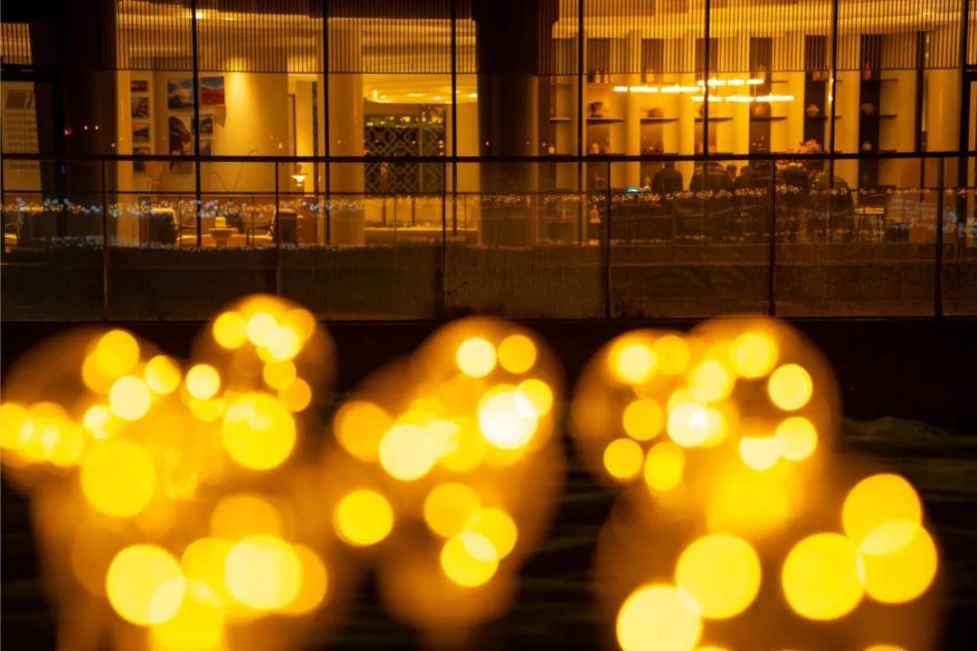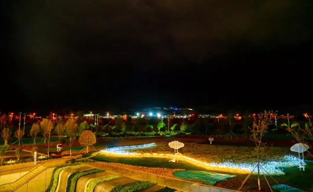 依著夜色,人們趁興而游,圍坐展示中心內(nèi),徘徊在燈火闌珊處,在鮮花、燈光中間吃著美食,悠悠揚(yáng)揚(yáng)地唱著理想和生活。