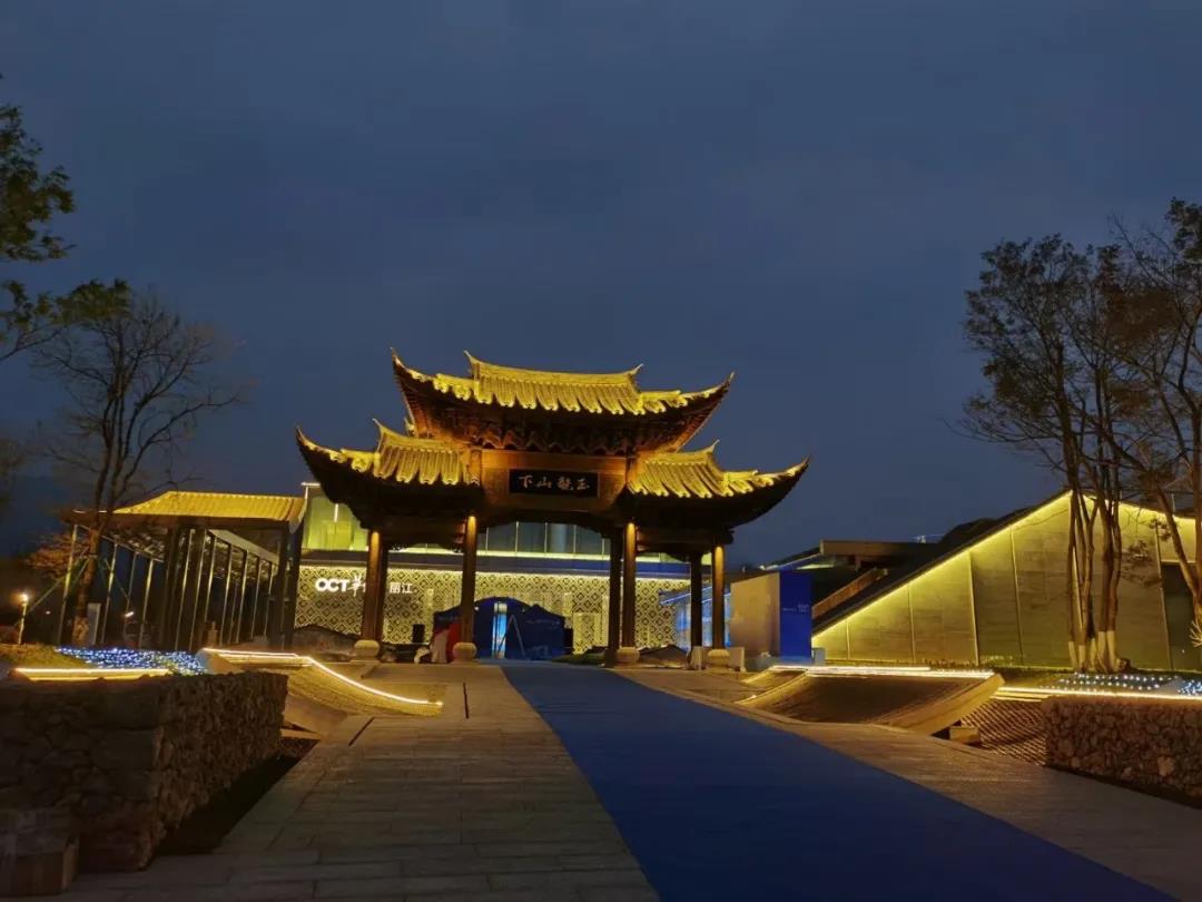 展示中心亮眼的流光,靜靜輝映著,盡管已是暮色四合,但遠(yuǎn)望這里,還是一片明朗。遠(yuǎn)掛的燈球透出橘紅色的光,似乎都在各自訴說著從前的故事,給寂靜的山海平添了些生機(jī)。