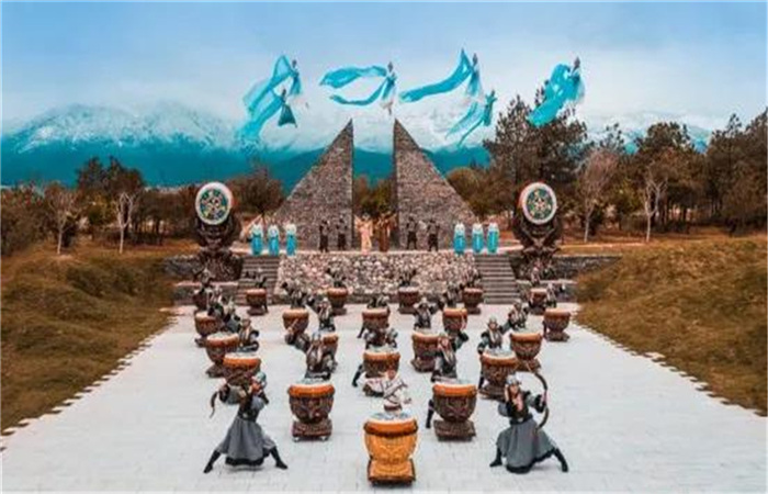這里有讓人敬畏的敬山石碓,那是早期游牧時代的人們,用石碓祭山神的習俗,是對大自然的尊重和崇拜的體現(xiàn);這里有最驚艷的山水情景迎賓秀,用最高規(guī)格的迎賓儀式迎接來到這里的每一個人,而在幾百年前的木府,就是用同樣的方式迎接過武功卓絕的元世祖——忽必烈還有明朝開國功臣——沐英還有縱情于山水的偉大旅行家——徐霞客。
