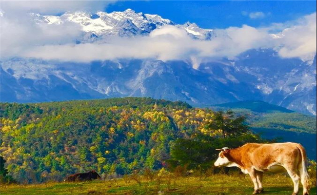 擁有完美的視角欣賞玉龍雪山,日照金山、日落映湖,這樣的美景在這里并不足為奇。