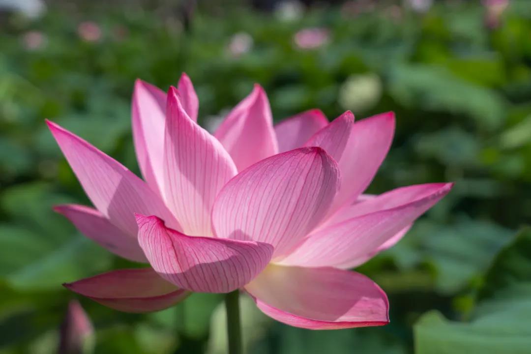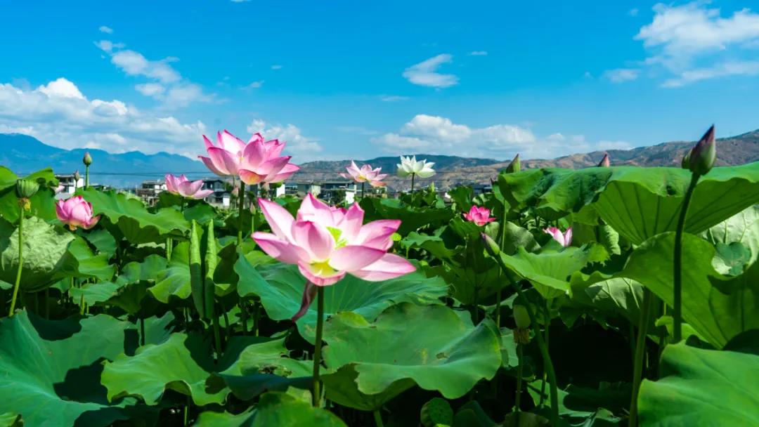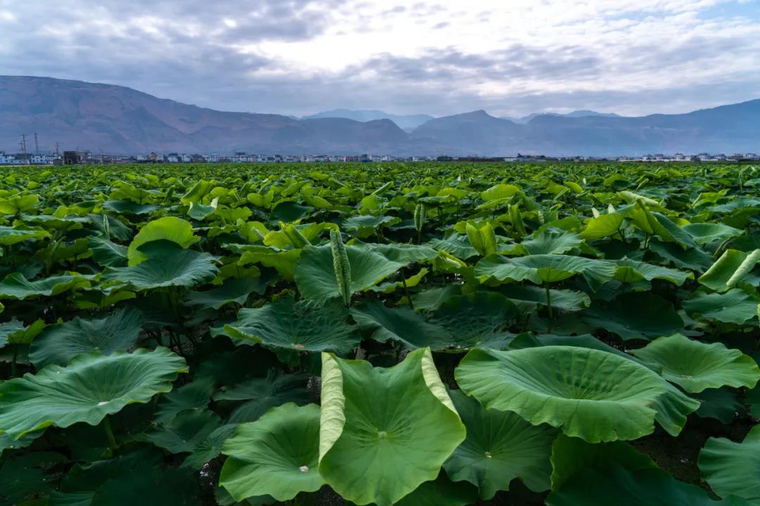 三川西湖一帶的荷塘,種植的多為藕蓮,主要以采收蓮藕為主。藕蓮葉子寬大,蓮藕產(chǎn)量高,花色清雅。碧綠的荷葉鋪滿大地,青翠欲滴,無邊無際的很是壯觀。