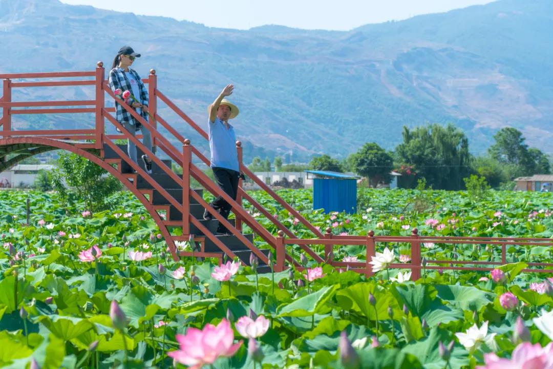 朵朵荷花在三川壩的屋舍、涼亭、過道映襯下,顯得生機盎然,充滿了詩情畫意,真可謂是“詩畫夢里,故園三川”了。