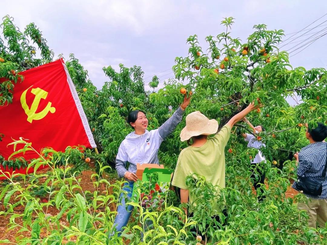 上周末,小編和小伙伴們自駕來(lái)到位于金沙江邊的古城區(qū)金安鎮(zhèn)增明村,看到現(xiàn)下農(nóng)民伯伯的桃園里,已是一片碩果。