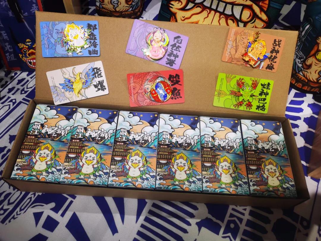 這一系列文創(chuàng)的靈感來源是納西族神話傳說中的神。將東巴神譜中的自然——大鵬鳥修曲、戰(zhàn)神優(yōu)麻、吉祥雙魚、神蛙巴格、海神飛螺等用卡通的形式表現(xiàn)出來,用年輕化的方式來表達納西東巴文化。以此為基礎(chǔ),從創(chuàng)意文具、家居用品到服裝衣帽,打造的一系列色彩鮮艷明亮的國潮風(fēng)格文創(chuàng)產(chǎn)品。設(shè)計上大膽創(chuàng)新、迎合年輕人品味,又注重適用性、實用性,麗江的神氣寶貝相當(dāng)神氣,圈粉無數(shù)。