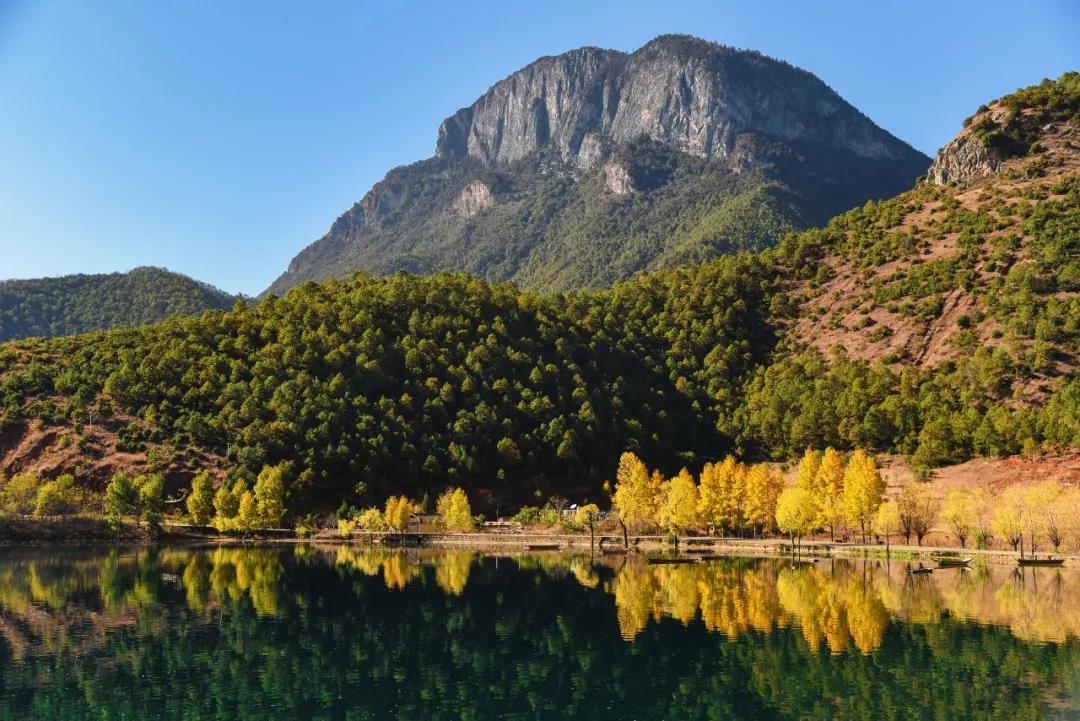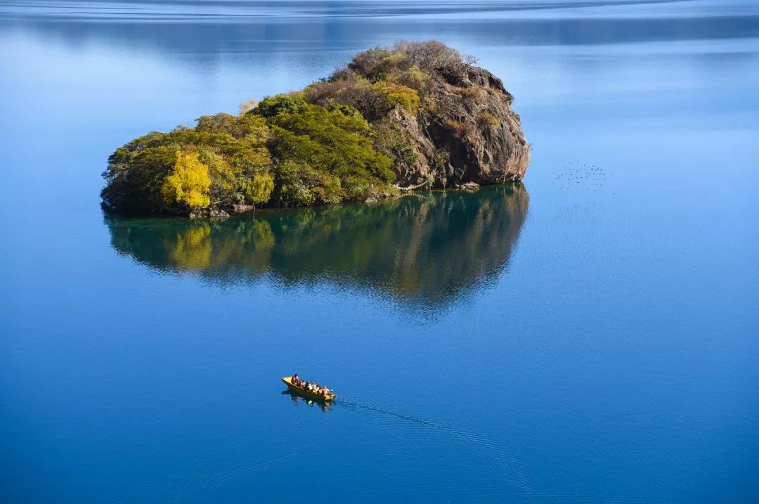 很難相信會有那樣深邃的藍,連萬里無云的天空都為之汗顏。幾座島嶼點綴在明鏡般的湖面上,風兒吹過,拉起的縹緲不定的波紋,神女山端坐在對面,僅凝視一秒,就能知道,她有一個美麗的故事等待講述。