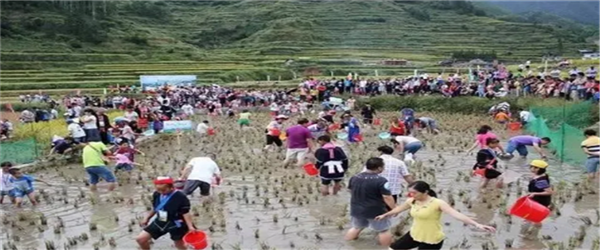 稻田摸魚游戲規(guī)則:活動不收取任何費用,摸到鯽魚和鯉魚可直接帶走,摸到一條紅錦鯉可任選一張其他景點門票(包括:網(wǎng)紅搖擺橋,新莊河漂流,長街宴)