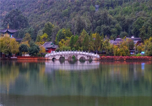 黑龍?zhí)豆珗@有著“麗江古城后花園”的美譽(yù),方圓7.5公頃,園內(nèi)亭臺(tái)樓閣錯(cuò)落,花木相映,以山光水色取勝,清幽典雅,一派詩情畫意。