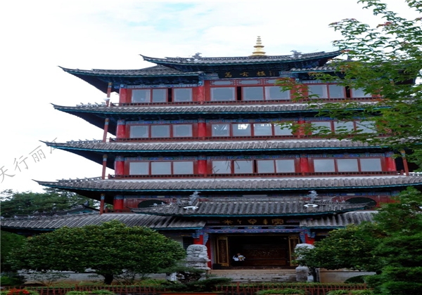 樓高33米,寓意納西族東巴經(jīng)記載的祖居33層天;