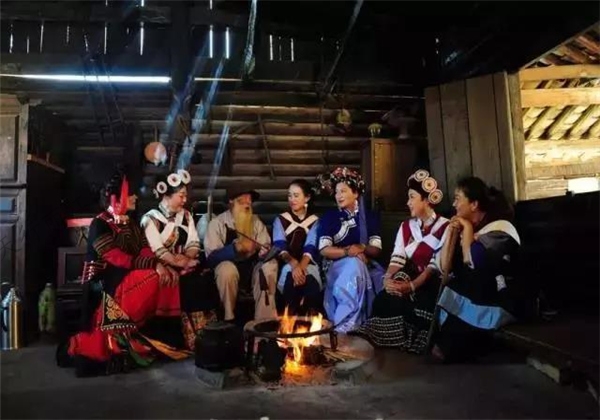 再去聆聽(tīng)一場(chǎng)悠揚(yáng)古老的納西古樂(lè)表演,曲藝悠揚(yáng),倍感憂傷,一唱一和之間,竟已挑動(dòng)情緒,久久不能忘懷。旖旎風(fēng)光,無(wú)限流連千百間,風(fēng)卷云舒,納西族人心中圣潔的玉龍雪山,泊泊流淌出的冰雪之水,融進(jìn)玉水寨中。水生萬(wàn)物,玉水寨的水仿佛具有靈性,那玉水流淌的聲音,也好似音符在跳動(dòng),清悅悠揚(yáng)。偌大的一股泉水順著山坡而下,折成三疊水。人們稱(chēng)第一疊為“出龍瀑”,第二疊為“戲龍瀑”,第三疊為“送龍瀑”,神龍三疊水的美名便得于此。成串的瀑布飛流而下,水汽陰霾,朦朦朧朧的,像是一個(gè)剛剛出浴的仙女捧著紗巾,游魚(yú)嬉鬧在她左右,歡喜跳動(dòng),歡呼雀躍。寨門(mén)口立著尊人身蛇身的金色塑像,是玉水寨的標(biāo)志性建筑,納西語(yǔ)叫“署”,神像背后有兩顆黃葉五角楓,樹(shù)下一眼神泉水,神泉滋養(yǎng)著古樹(shù),古樹(shù)護(hù)衛(wèi)著神泉。這里有納西族傳統(tǒng)家庭院落,錯(cuò)落有致的木楞房,依地勢(shì)而建。面容安詳?shù)睦先酸勚?,滿屋子酒味飄香;圍坐火塘邊,聽(tīng)著壺水“咕嚕咕?!钡捻懧暎b看山水,把酒言歡,滿懷安寧。