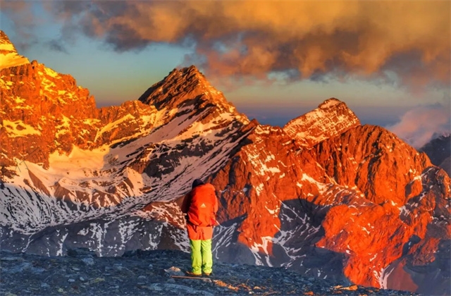 早晨自由起來觀看玉龍雪山的日照金山,隨后收拾物資出發(fā),沿著原始森林步道前行。抬頭便是雪山,放眼遠(yuǎn)望則是宛如瑞士阿爾卑斯山脈的牧場風(fēng)光。適時(shí)抵達(dá)牦牛坪牧場,打卡拍照玉龍群峰,