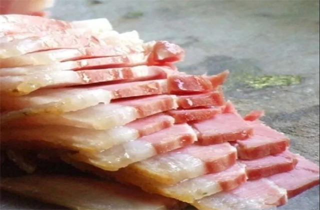 豬膘肉是麗江地區(qū)瀘沽湖摩梭人家待客中最具特色的一道美食。豬膘肉冬季腌制,經(jīng)數(shù)年不霉,肉味香醇。它不僅是傳統(tǒng)宴席中最為重要的一道佳肴,而且是走親串友時饋贈的禮品。豬膘肉味道香美,食后令人不忘,是去到瀘沽湖必嘗的一道菜。