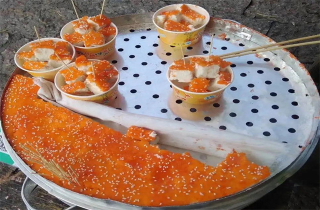 雞豆涼粉是一種豆類磨面濾漿做成的小吃,在麗江新老城區(qū)的大街小巷都能看見。一直以來,雞豆涼粉在麗江都是一種經(jīng)久不衰的風(fēng)味小吃。暑吃涼、寒吃熱,涼吃拌以酸醋、醬油、蔥花、蒜末等調(diào)料,能消暑開胃;熱吃將涼粉在平底鍋內(nèi)用香油雙面炸黃,拌上調(diào)料,便可食之。