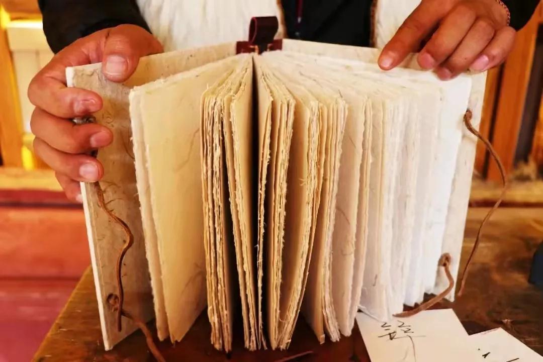 當你觸摸它時,略顯粗糙厚重的質(zhì)感中帶著一股神圣靜謐的歷史感,讓人忍不住心生敬畏?,F(xiàn)在,一張張質(zhì)樸的東巴紙被制作成了現(xiàn)代人實用的筆記本、書簽、燈罩等,歷史與現(xiàn)代的交織,讓東巴紙煥發(fā)出新生的魅力。
