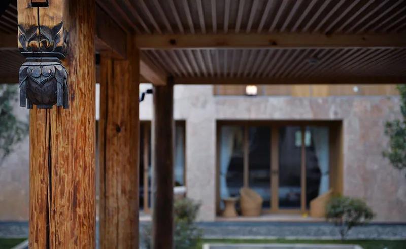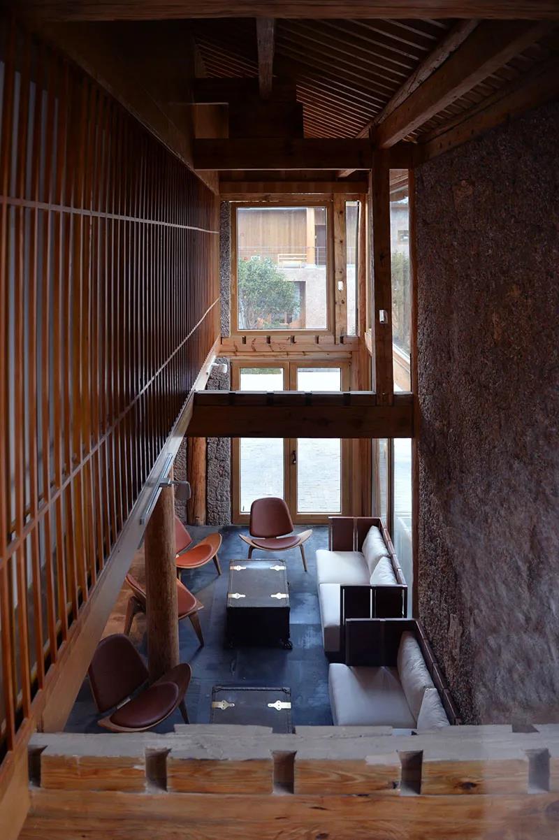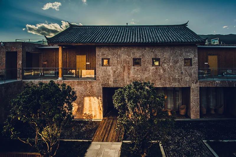 該酒店由日本著名建筑設(shè)計(jì)師堤由匡獨(dú)家打造,利用粗糲的五花石、質(zhì)樸的杉木、古樸的東巴紙進(jìn)行創(chuàng)新設(shè)計(jì)。木造民宅外墻上,堆砌著產(chǎn)自當(dāng)?shù)氐奈寤ㄊ?,保留了納西建筑的傳統(tǒng)院落式布局,給來到這里的人們一種別樣居住體驗(yàn),同時(shí)又營造出一種“回家”的溫柔之感。