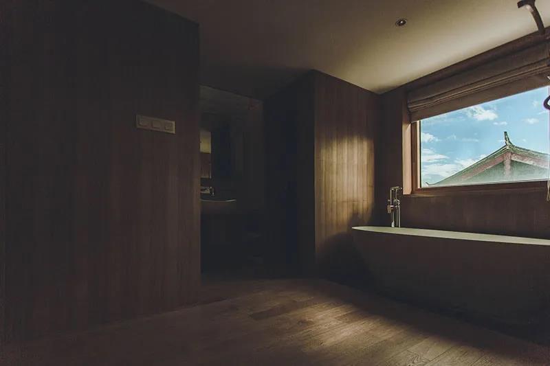 行館客房數(shù)量面積和公共空間面積比例為1:1,這些空間讓陌生的旅客之間有了自然聯(lián)系。在藝文體驗(yàn)、休憩、飲食、親子時(shí)光、與友交談時(shí),旅客都能充分感受到侘寂院落的建筑之美,以及白沙古鎮(zhèn)的秀外慧中。很多旅客最喜歡坐在行館二層室外平臺(tái)飲茶休憩一整天,只為欣賞遠(yuǎn)處的玉龍雪山。
