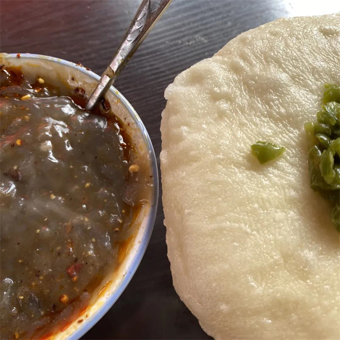 在等待花卷變焦脆的過程中先來一碗雞豆涼粉湯暖暖胃,慢火熬制的涼粉湯出了麗江你就難找到了。雞豆的清香入口擴散開來,喝了一碗就想來第二碗。