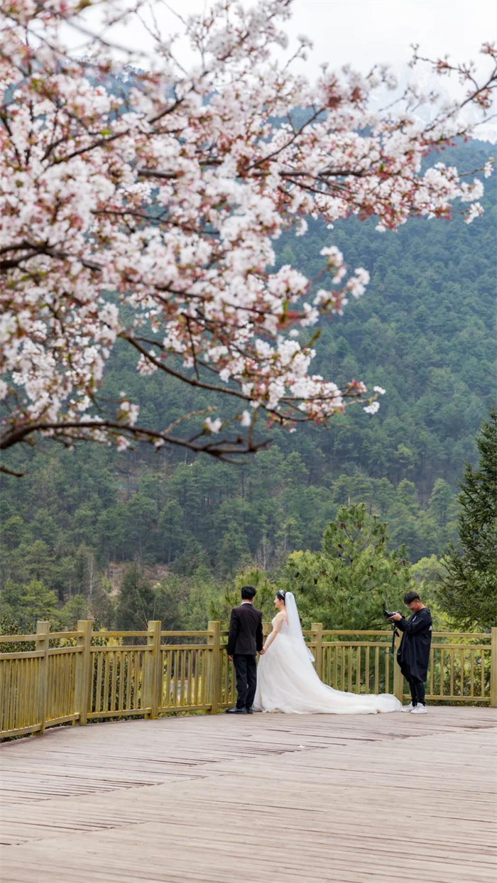 到過(guò)玉龍雪山景區(qū)的人說(shuō),景區(qū)最美的景色三分之一在藍(lán)月谷。雪山之下,綠植環(huán)繞,如寶石一般的湖面倒映著山水的變化,景致美麗無(wú)窮。徒步一段,登上高處俯視,這時(shí)的藍(lán)月谷不只是景色而已,眼前的山水都幻化成一幅雋美的畫(huà)面,鋪開(kāi)的色彩毫不吝嗇地展示在面前,是一生都無(wú)法忘懷的美。沿著棧道緩緩行走,看平靜的湖面上游動(dòng)的白云,與遠(yuǎn)處皚皚的雪山。望著林間時(shí)不時(shí)飛動(dòng)的鳥(niǎo)兒,頓時(shí)生了意境與靈性。眼前與遠(yuǎn)處時(shí)不時(shí)有新人拍攝婚紗,是藍(lán)月谷另一種別致的美景。連竇驍都感嘆:“這里大概是一個(gè)婚姻的巢穴吧?!泵刻於紩?huì)有數(shù)不清的新人在這里拍下難忘的瞬間,一年四季,藍(lán)月谷由綠變藍(lán),從藍(lán)到綠,變化之間也見(jiàn)證了那些美好的愛(ài)情故事。在湖中仰望雪山及天空,你會(huì)感嘆天地之遼闊;而走在湖邊上,能看見(jiàn)穿著婚紗禮服的他們露出笑容,甜蜜又幸福。藍(lán)月谷散發(fā)的浪漫,是否會(huì)讓你又開(kāi)始相信愛(ài)情?