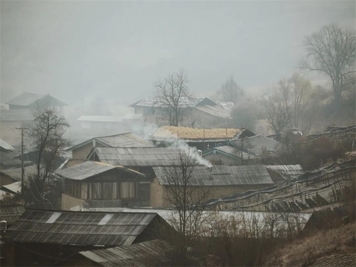 尾隨冬天的腳步,每年的殺豬季如約而至。天蒙蒙亮,整個(gè)村子還沉浸在睡夢中,周圍一切朦朧而幽靜。隨著燒殺豬水的男人的劈柴聲、咳嗽聲,偶爾的狗叫聲,伴著那熊熊燃燒的火卷過干柴發(fā)出的噼啪聲,美麗的麗江壩子慢慢的從沉睡中悄悄地醒來。晨曦中,裊裊炊煙升起來了。家家戶戶屋頂?shù)拇稛熢诖遄永飶浡_來,形成了一層青色的薄霧,籠罩著村子,清秀的山村因此而增加了一種朦朧之美。