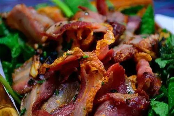 它的主料則是由本地豬的五花肉切到適中的厚度烤熟。這樣烤出的豬肉,豬皮金黃松脆,肥而不膩,瘦而不柴,口感松脆,蘸著當?shù)氐睦苯贩?,上面放著油炸的薄荷,吃起來那叫一個夠味。麗江幾乎各個飯店小餐館都可以做,而且做法也一致。