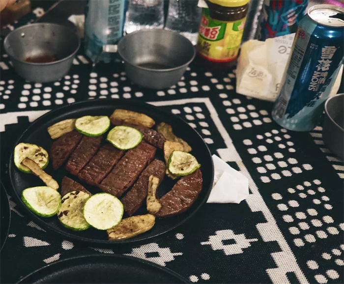 伙伴們展示自己手藝的時(shí)候也到了。隨著鍋碗瓢盆“哐啷”交錯(cuò)的聲響,營(yíng)地中開始彌漫著食材的香味。在營(yíng)地中晚餐時(shí),太陽(yáng)日落西斜,一點(diǎn)點(diǎn)消失在夜空中,營(yíng)地亮起了星星點(diǎn)點(diǎn)的燈光。