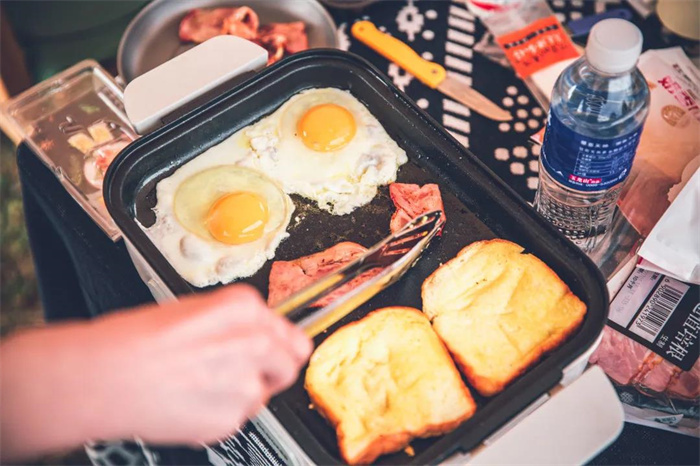 “可以來(lái)吃早餐啦!”,向?qū)г趲づ裢庀蛭覀兒魡?。煎到剛剛好雞蛋,蛋白熟了,蛋黃還在是流動(dòng)的液體,再加上培根和烤焦了的面包,真是令人心情愉悅的健康早餐。