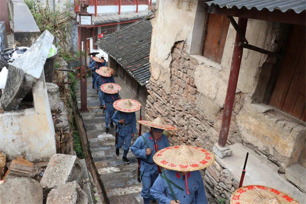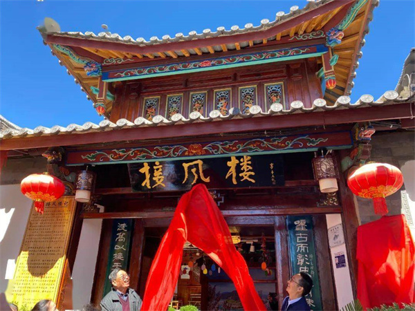 第二站: 接風(fēng)樓。出紀念館,穿過麗江古城主街,便來到當(dāng)年麗江人民夜送紅軍的接風(fēng)樓。1936年,賀龍率領(lǐng)的中國工農(nóng)紅軍二方面軍隊伍為了不驚擾民眾,選擇在深夜離開古城,但麗江的百姓依然打著火把趕來接風(fēng)樓送別紅軍。實際上,接風(fēng)樓也叫“普得壇”,是明代麗江土司迎接貴賓入城舉行儀式的場所和當(dāng)時麗江壩百姓祭神祈福處,后經(jīng)修繕,現(xiàn)已成為麗江古城重要的民族文化展示窗口。