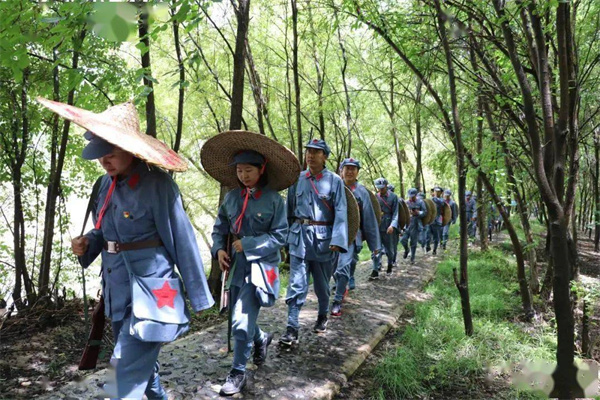 第七站2.5公里長征路。過了鐵虹橋,田間地頭出現(xiàn)一條彎彎曲曲的小路,這便是2.5公里長征路。這個時節(jié)正是洋芋成熟的季節(jié),田間地頭忙碌的村民,還有久違的泥土味,似乎這才是真實的農(nóng)村生活。越往前走,沿途越叢林密布,熟透的桑葚落了一地,地面也染成的紫黑色?!梆I了就摘路邊的野果”,當(dāng)年紅軍長征吃過的野果,或許我們今天也能吃到。
