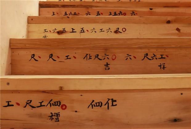 從進入宣科書房的第一步臺階開始,便是感受古樂文化的開始,樓梯的臺階上寫著樂曲名為《吉祥》的工尺譜,寓意美好,文化深厚。