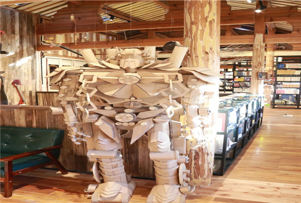 一進門你還會看到一個“龐然大物”,那其實是一個羊羊用快遞盒做的變形金剛。