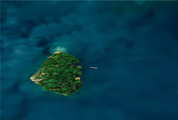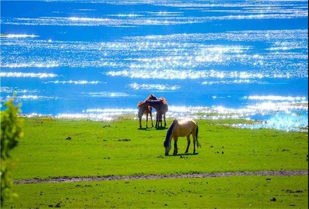 湖中坐擁數(shù)座小島,島上風光旖旎,四面環(huán)水,海天一色,湖水廣闊無垠,岸邊群山環(huán)繞,蒼郁蔥蘢。