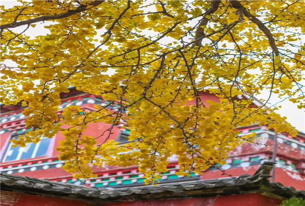 明媚燦爛的黃,藏在拉市壩指云寺的銀杏樹上。在距離麗江古城18公里左右的拉市壩西部有一座指云寺,在10月至11月份,絕對值得一去,寺門前有幾顆銀杏樹,每到這個季節(jié),在陽光的照射下,金燦燦的銀杏葉與古剎相映生輝,煞是好看。