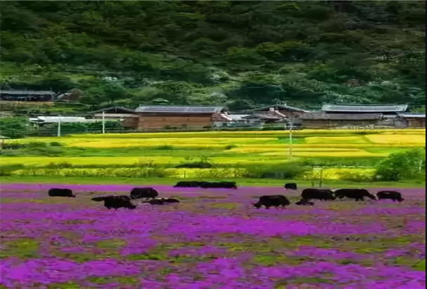 高雅神秘的紫,藏在這座被稱為世外桃源的山間壩子——文海。一汪高原湖水,一座炊煙裊裊的村莊,一片紫紅色的花海……