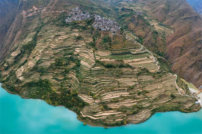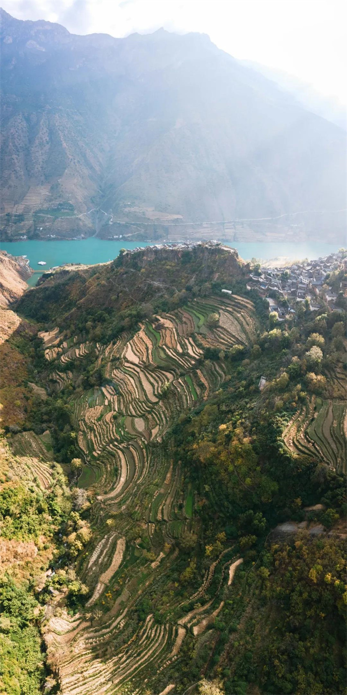 石頭城海拔在1700~1800米,小城周圍梯田連綿,冬春麥浪蕩漾,夏秋禾稻飄香,把城堡裝點得生機盎然。這些梯田有著別具一格的自流灌溉系統(tǒng),這種梯田建設的獨創(chuàng),充分顯示出古代納西族人民的聰明才智。