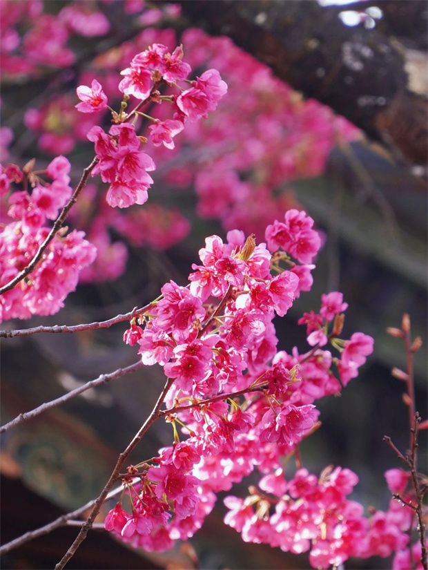 叢間回蕩。若是運(yùn)氣好,還能碰上寺院里的僧人,他們慈悲的面容與這櫻花美景相得益彰,為賞花之行