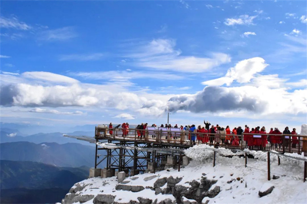 乘索道抵達(dá)4506米觀景臺(tái),已經(jīng)能夠感受到雪山的磅礴之氣,氧氣在雪山懷抱中化作白霧,想要沿著棧道攀登挑戰(zhàn)468