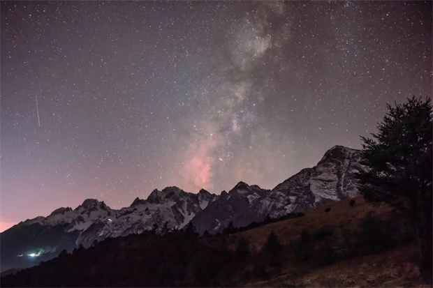 在雪山腳下,赴一場星空之約,春日夜空清朗,點(diǎn)點(diǎn)繁星織起了夜色的動(dòng)人,白天看過了雪山的好風(fēng)光,在寧靜的夜晚