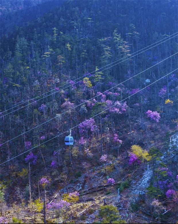 乘索道穿越裹著薄霧森林,云杉坪和牦牛坪的“空中草甸”正上演大自然的魔法秀。走過咯吱作響的蜿蜒棧道,看牛羊在