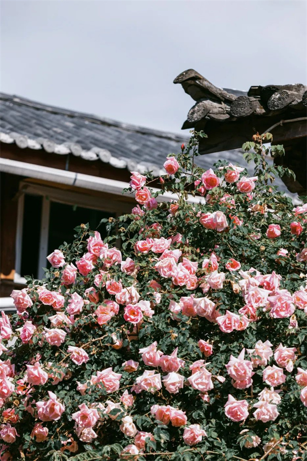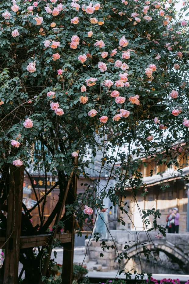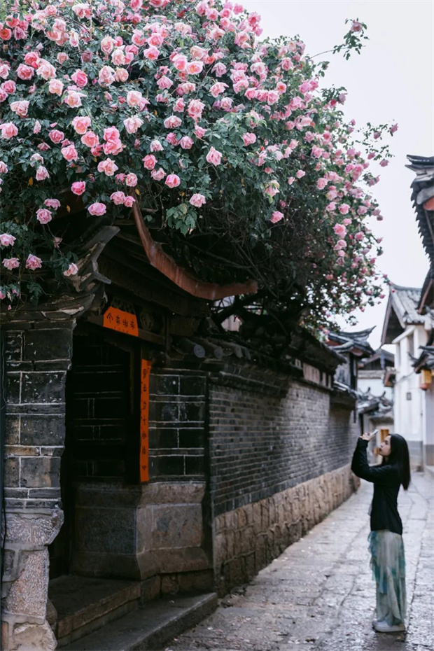 每當花開時節(jié),“麗江之路”便會以一種近乎囂張的方式展現(xiàn)自己的美麗——它可以爬高十幾米,覆蓋整面墻壁或爬滿整
