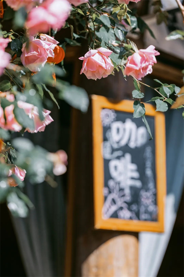 投下粉色的光斑。微風過處,桃、杏與茶香交織的芬芳在巷弄間流轉,時而濃郁如新釀的花蜜,時而清淡似雪山融水的