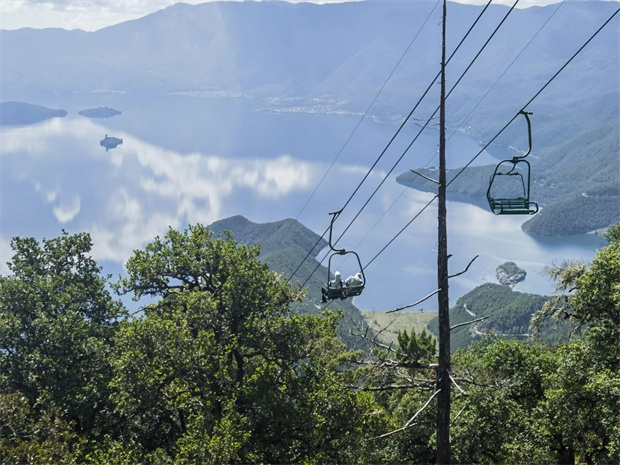 全景索道體驗(yàn):乘坐瀘沽湖唯一索道登頂格姆女神山,海拔3450米,垂直落差642米,單程20分鐘。上行穿越森林,偶
