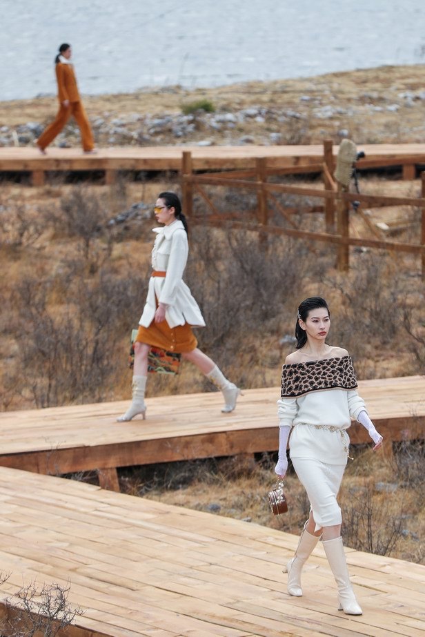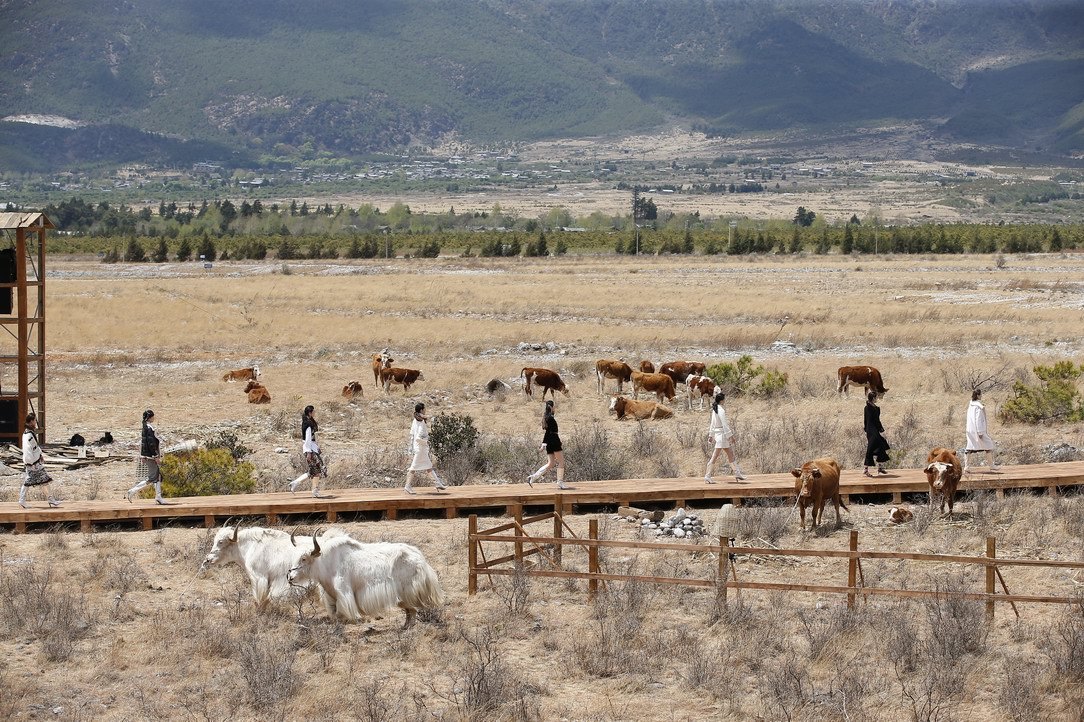 在延續(xù)XG時尚優(yōu)雅的品牌風(fēng)格之上增添了荒野游牧風(fēng)的墨彩,模特置身于無垠的原野和牧場之中游走自如,將時下潮流和自然藝術(shù)糅合、碰撞,近300米原生態(tài)實木T臺,100多頭牛羊群,近6000米平方的秀場空間。最終匠心鑄造了一個天然的舞臺和恢弘秀場,以多平臺多渠道的呈現(xiàn)方式令場內(nèi)外觀眾都達到了最佳視覺體驗。