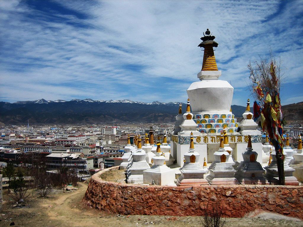 ??午餐后,跨過了湍流不息的金沙江,穿過了云霧繚繞的冷杉森林,眼前就出現(xiàn)了一片又一片平坦的高原草甸。藏區(qū)的物質(zhì)貧乏,部分以游牧為生的藏民的生活。晾曬青稞的木架,竟被美國衛(wèi)星偵察為導(dǎo)彈發(fā)射架,這里的一切,都被人們編成了故事。到處可看到經(jīng)幡(風(fēng)馬旗)瑪尼堆、白色的佛塔、燒香臺、轉(zhuǎn)經(jīng)亭?;ㄙM(fèi)了將近3個小時,進(jìn)入香格里拉境內(nèi),不過沿途的美景甚是漂亮,藍(lán)天、白云、金沙江組合的圖案如此生動。