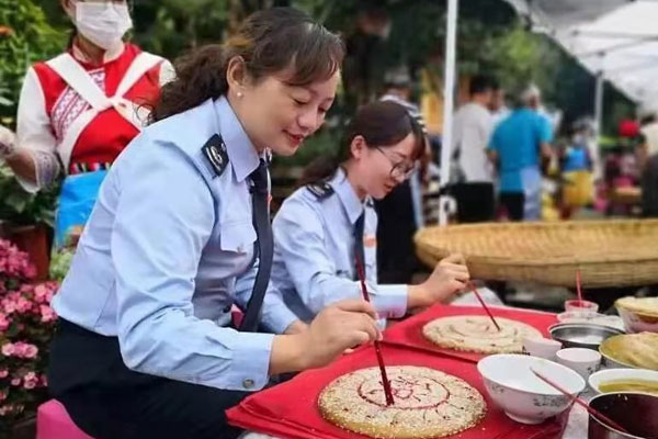 此外,為豐富本次活動內(nèi)涵,國家稅務(wù)總局麗江市稅務(wù)局與古城區(qū)大研街道辦事處聯(lián)合組織各社區(qū)居民、稅務(wù)干部職工,進行了傳統(tǒng)納西大月餅現(xiàn)場制作體驗活動,得到了廣大參與者的積極響應(yīng),吸引了中外游客前來品嘗。