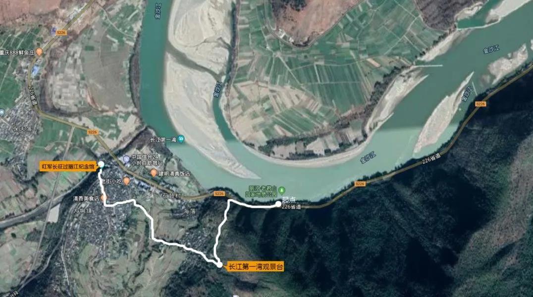 長江第一彎或長江第一灣、萬里長江第一灣(可漂流)、紅軍長征紀(jì)念館、石鼓亭、鐵虹橋(茶馬古道古鐵索橋)