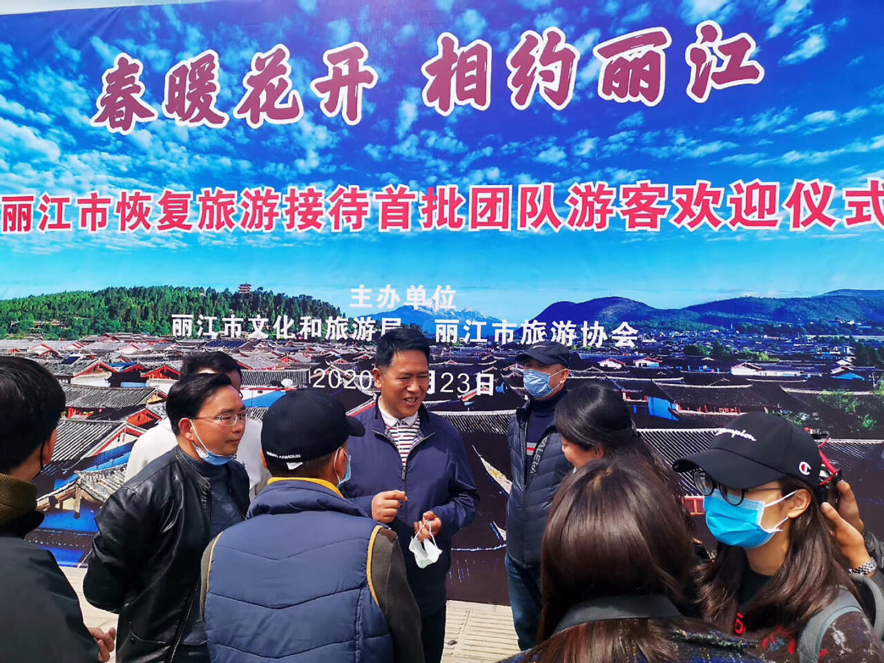 在暫停經(jīng)營旅游團(tuán)隊業(yè)務(wù)60天后,3月23日,云南麗江迎來首批旅行團(tuán)。麗江旅行社協(xié)會和麗江市文化和旅游局在麗江三義機場舉行歡迎儀式!